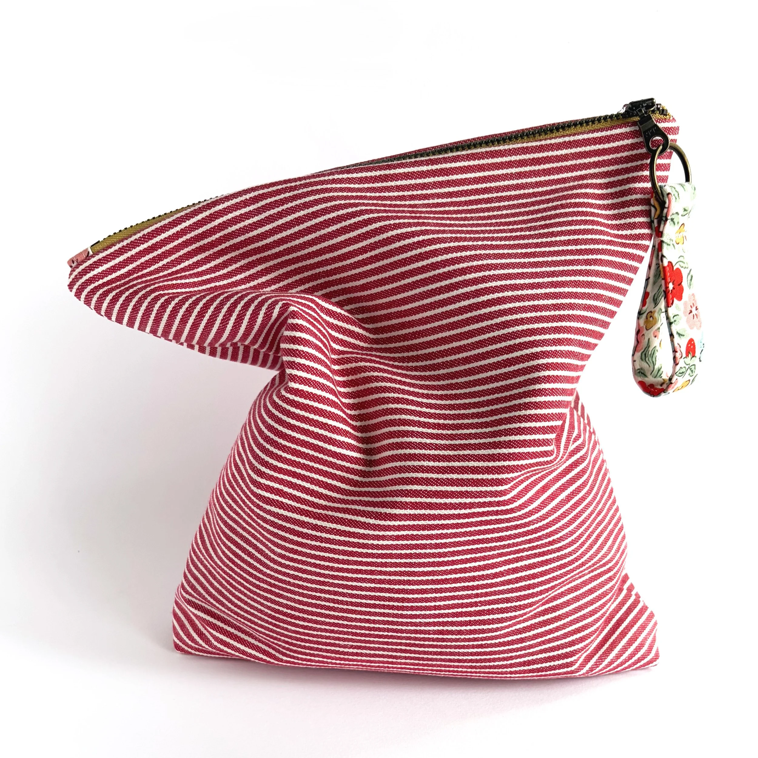 Red and White Striped Denim Zipper Pouch